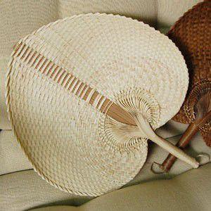 アジアン雑貨 ロンタル椰子で編まれたなうちわ アイボリー 10703