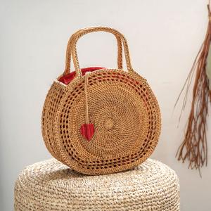 アタで編まれた アジアン カゴバッグ Gタイプ レッド色 かごバッグ おしゃれ トートバッグ カゴバッグ 夏 アジアンバッグ 春 カバン 2920