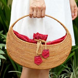 アタバッグ かごバッグ かご バッグ ハーフムーン 約 W 20cm D 9cm H 21cm アタ ハンドバッグ おでかけ 浴衣 和装 アジアン 雑貨 13950