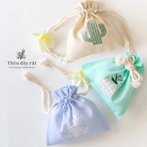 巾着袋 Sサイズ ベトナム 刺繍 オリジナル ポーチ ベトナム雑貨 ギフト プレゼント お土産 ハンドメイド おしゃれ リゾート 西海岸 Gio ha ジョーハ 51255