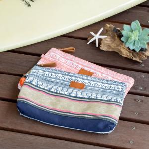 ポーチ レディース メンズ 小物入れ コスメ クラッチポーチ クラッチバッグ ボーダーライン キャンバス エスニック かわいい 旅行用 アウトドア カジュアル 6460