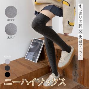 ニーハイソックス 靴下 同色 3足 3組 セット 左右計6枚 ニーハイ ソックス 細リブ 太リブ コットン 綿混 綿 レディース 美脚 細見え 無地 ロング丈 膝上 小学生