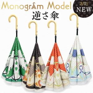 美しい両面柄のモノグラム 逆さ傘 晴雨兼用 レディース 傘 大きい【 CARRY saKASA キャリーサカサ Monogram Model 】 雨傘 おしゃれ 長傘 ブランド 婦人ギフト