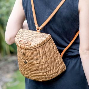 リュック ショルダー アタバッグ かごバッグ かご バッグ リュクサック レザー 革 紐 約 W 24cm D 12cm H 19cm アタ アジアン 雑貨 13951