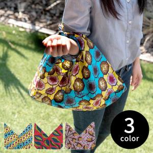 エコバック インナーバッグ バッグインバッグ あづま袋 巾着袋 カラフル アフリカン ファブリック 綿 おしゃれ 自然モチーフ 民族布 パーニュ 90042