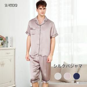 パジャマ 男性用 半袖 前開き 高級 シルク100% 寝間着 送料無料