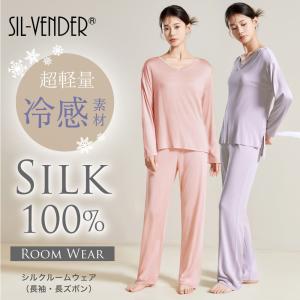 パジャマ シルク 100% 送料無料 長袖 長ズボン 女性用 レディース 大きいサイズ ゆったり ルームウェア 部屋着 寝汗 快眠 安眠 涼感 涼しい 春 夏 秋 夏用