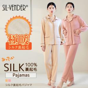 パジャマ シルク 100% 裏起毛 コットン 送料無料 極暖 長袖 長ズボン 女性用 レディース 温活 防寒 保温 寝間着 ルームウェア 部屋着 安眠 秋 冬 ギフト 可愛い