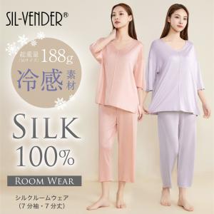 パジャマ シルク 100% 送料無料 七分丈 七分袖 レディース 大きいサイズ ゆったり ルームウェア 長袖 長ズボン 部屋着 涼しい 薄手 軽い 春 夏 秋 夏用 軽量