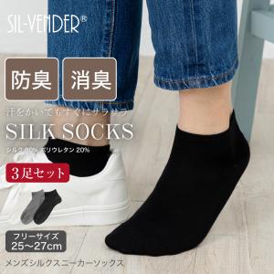 靴下 シルク スニーカーソックス 【 3足セット 】 メンズ 25-27cm 送料無料 シルク 防臭 消臭 抗菌 通勤 通学 スニーカー ソックス カジュアル 通気 蒸れにくい