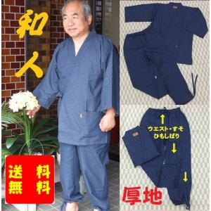紳士デニム作務衣(肉厚綿100%) 送料無料 農作業用から仕事着、くつろぎ着まで デニムさむえ メンズ