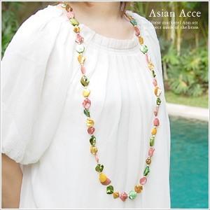 アジアン雑貨 シェルのパステルカラーロングネックレス ミックス アジア工房 10069