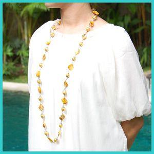 アジアン雑貨 シェルのカラフルロングネックレス イエロー アジア工房 10073