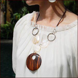 アジアン雑貨 ローズウッドとパールシェルのアジアンネックレス アジア工房 10084