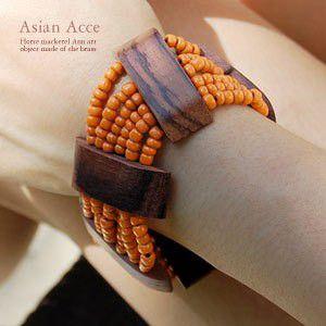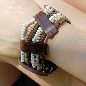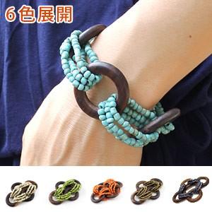 ウッドリングとビーズのアジアンブレスレット 6色展開 アジア工房 b-114