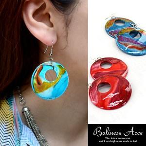 カラフルなマーブル模様のラウンドピアス 2色展開 アジア工房 1255