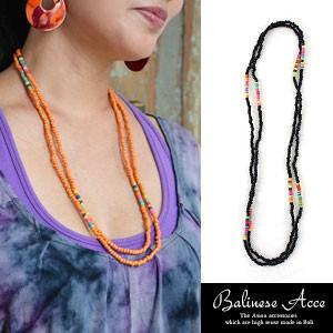 カラフルビーズのロングネックレス 2色展開 アジア工房 1258