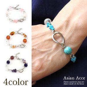 天然石のチェーンブレスレット 4色展開 アジア工房 b-1145