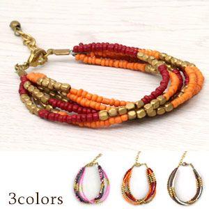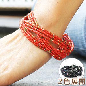 カラフルビーズの6連ブレスレット 3色展開 アジア工房 b-1169