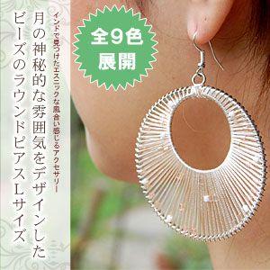 シルク糸とビーズのラウンドピアスLサイズ l302