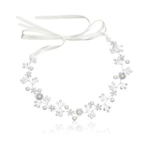 サムコス 髪飾り 花 パール 花かんむり リボン ホワイト ヘッドドレス クリスタルビーズ 花冠 ヘアアクセサリー 結婚式 発表会 披露宴 卒業