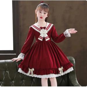 【値下げ】ワンピース 子供 ドレス ロリータ 学園祭 演出服 ゴスロリ 長袖 女の子 キッズ フォーマルドレス ジュニア ロング ピアノ コンクール 蝶結び
