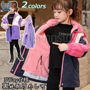 アウター キッズ 3wayジャケット ウィンドブレーカー 裏フリース ジャケット 取り外し可 女の子 冬服 防寒 ブルゾン ジャンパー 上着 子ども服