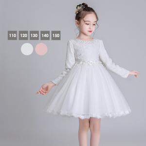 チュールドレス ワンピース 子供 発表会 150 長袖 女の子 キッズ フォーマル おしゃれ 膝丈 衣装 白