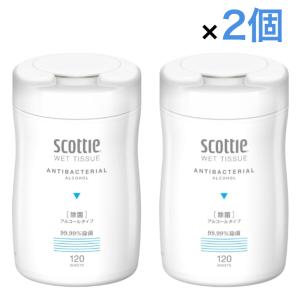 スコッティ ウェットティシュー 120枚 2個 本体 ウェットティッシュ 除菌 アルコールタイプ ボトル バイ菌 99.99 除菌 ウェットティシュ 消毒対策 クレシア