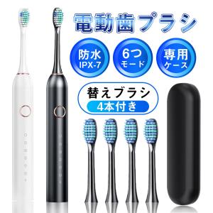 電動歯ブラシ 音波ブラシ 歯科医師監修 充電式 替えブラシ4本付き 収納ケース付き 虫歯予防 歯周病予防 歯垢除去 IPX7防水 口臭対策 6つモード