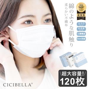 マスク 不織布 立体マスク 不織布 マスク 小さめ 2サイズ 平ゴム 120枚 超大容量 ホワイト マスク 三層構造 やわらかい 大容量 高評価 cicibella シシベラマスク