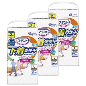 アテント 超うす型パンツ L 男女共用 60枚(20枚×3) 下着爽快プラス 【ケース販売】 【一人で歩ける方】