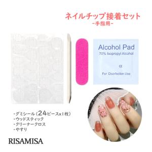 ネイルチップ ネイル 接着材 両面テープ グミシール 24枚入 4点セット 強力 粘着 透明 ハンド フット用 クリーナー ウッドスティック 爪やすり