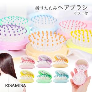 くし ヘアブラシ 櫛 折りたたみ 鏡 ミラーブラシ 頭皮 マッサージ 濡れ髪 乾いた髪 ヘアケア プレゼント スタイリング レディース 旅行 学校