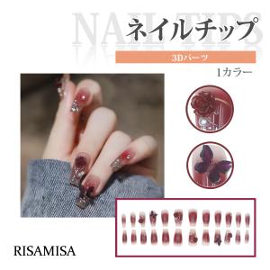 ネイルチップ 付け爪 チップ ロング 24枚セット グルー付 3Dアート 蝶 ばら パール 時短ネイル 貼るネイル セルフ 手の爪 つけ爪 初心者 シンプル おしゃれ 大人