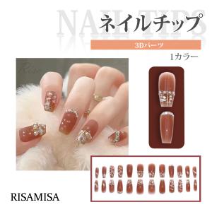 ネイルチップ 付け爪 チップ ロング 24枚セット グルー付 3Dアート パール ベージュ キラキラ ストーン 時短ネイル 貼るネイル セルフ 手の爪 つけ爪 初心者