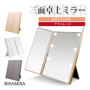 三面鏡 卓上 女優ミラー 卓上ミラー 鏡 ライト led かわいい 化粧鏡 メイク アウトレット品