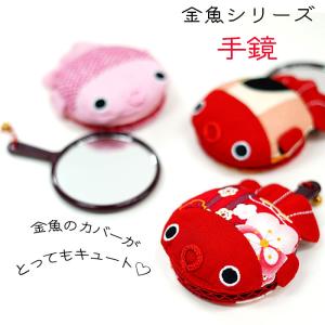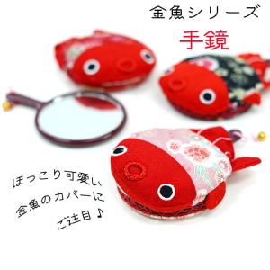 手鏡 コンパクト 金魚シリーズ 金魚のカバー付き丸鏡 金魚 手鏡 縮緬 夏 可愛い ちりめん細工館