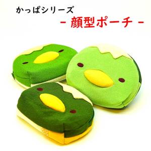 [顔型ポーチ かっぱシリーズ] 河童 かっぱ カッパ ポーチ コンパクト マチ付き 大容量 縮緬 可愛い 小物入れ きゅうり ワンポイント刺繍