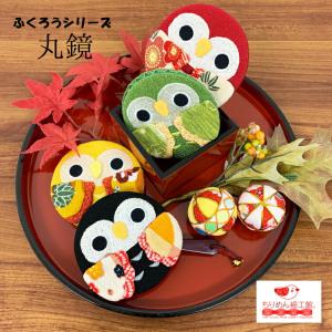 手鏡 ハンドミラー コンパクト ふくろう 丸鏡 6色 梟 フクロウ キャラクター 鏡 丸鏡 手持ち鏡 ミラー コンパクト 小さい 縁起物 可愛い ちりめん細工館