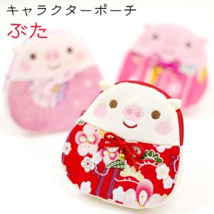 ポーチ 小物入れ 可愛い [キャラクターポーチ ぶた 3色 ] 豚 ブタ 三匹の子豚 かわいい ちりめん 刺繍 縁起物 ファスナー マチ付き