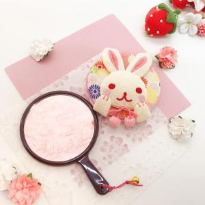 手鏡 コンパクト ボンボンうさぎの丸鏡 兎 ウサギ うさぎ 鏡 丸鏡 手持ち鏡 ミラー コンパクト 小さい 可愛い 縁起物 プレゼント 兎 ちりめん細工館
