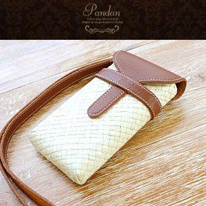 パンダンとレザーで出来たストラップ付きスマホケース アジア工房 11611