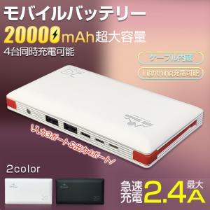モバイルバッテリー iphone 小型 20000mah 大容量 軽量 充電器 ポータブル電源 残量表示 直接 携帯充電器 ケーブル内蔵 スマホ充電器 android タイプc 急速充電