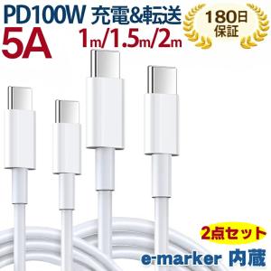 USB Cケーブル PD対応 100W/5A 【2点セット】急速充電 タイプc ケーブル データ転送 1m 1.5m 2m e-marker 内蔵 Macb00k Pro/Pad/Galaxy Android 対応