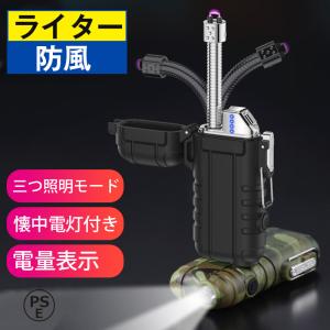 電子ライター Type-C充電式 防塵 防水 防風 無炎 懐中電灯機能 3段階照明モード 小型 軽量 無火炎 LED電量表示 アウトドア 登山 プレゼント PSE認証済み