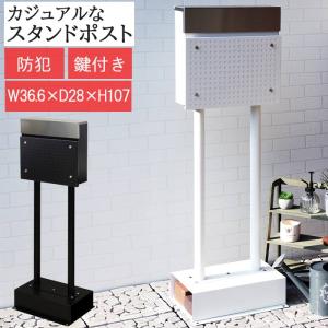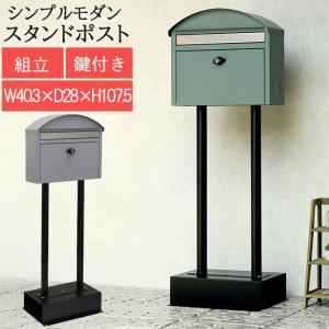 スタンド ポスト 郵便受け 手紙 郵便箱 メールボックス モダン スタンド ゆうポス ネコポス 金属製 鉄製 鍵付き シンプル 棚付き 安定感 金属 ハンドル