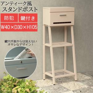 スタンドポスト 郵便受け 手紙 郵便箱 メールボックス 郵便差出箱 ゆうポスト ネコポス 金属製 鉄製 鍵付き シンプル 棚付き 安定感 金属 ひねりロック