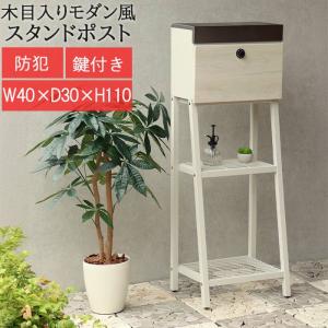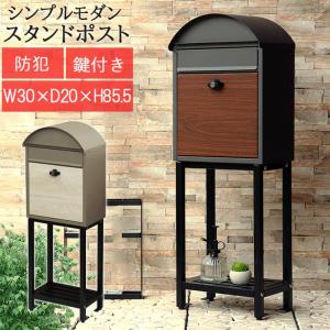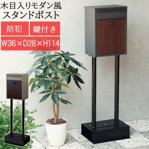スタンドポスト 郵便受け 手紙 郵便箱 メールボックス スタンド 茶封筒角型2号 投函可能 鍵付き 防犯 郵便取 デザイン ダイヤルロック 木目 錆びにくい 固定
