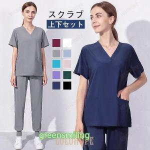 スクラブ セットアップ 上下セット 白衣 レディース 半袖 ドクター 歯医者 ユニフォーム 女性 美容 サロン おしゃれ ナース服 医務衣 介護施設